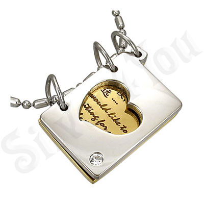Iubirea si devotiunea ce o porti fata de persoana iubita poate fi acum aratata facandu-va un dar ca si cuplu ce va consta intr-un pandantiv din inox, ce poate fi purtat de amandoi, fiecare cate o jumatate, simbolul ce va v-a aminti permanent de dragostea celuilalt. Setul de pandantive din inox, se vor imparti in doua jumatati, fiecare din acestea fiind purtat la gatul celor doi iubiti.